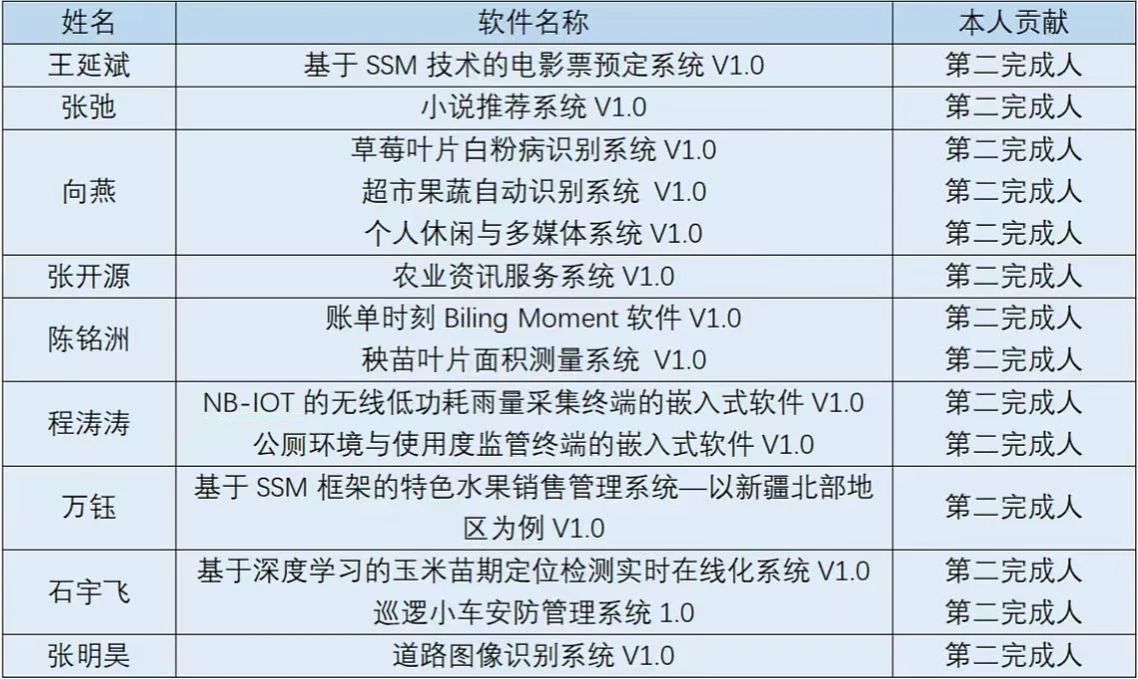 在公司领导和老师的关心和指导下,同学们积极参加各类学科专业竞赛,以科学严谨的态度和团结合作的精神取得了丰硕的科研成果,展现出良好的学术实力和创新能力。截至目前,共获得国家级学科竞赛一等奖1项、省级学科竞赛二等奖2项,论文发表1篇,获得计算机软件著作权14项。
