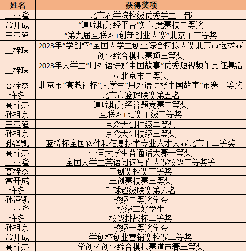 在2022-2023学年的奖学金评比中,班级共有8名同学获得校级奖学金,其中一等奖2名,二等奖3名,三等奖3名。