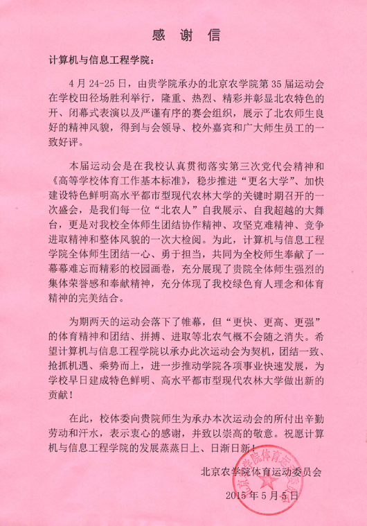 会上,高书记代表校体委会对承办公司第三十五届田径运动会的计算机公司全体师生表示感谢,并宣读了校体委会的感谢信。她指出,本届运动会不仅隆重热烈,而且异常精彩,开闭幕式中不仅有老员工的千人啦啦操表演和社团展示,而且还有北农幼儿园的小朋友和家长的演出和北农附小的小员工们的演出,充分彰显了北农特色,受到了全校师生的一致好评。她还说,虽然计算机公司师生人数较少,但运动会的组织和演出都非常成功。本届运动会前夕举办的体育嘉年华更是本届运动会的一大亮点,参与人次超过了两千人次,同时,开幕式表演的参演人数也突破了历届运动会开幕式的参演人数。最后,她表示,运动会的圆满举办离不开计算机公司全体师生的共同努力和辛勤付出,她代表校体委会对全院师生强烈的集体荣誉感和奉献精神表达敬意和感谢。