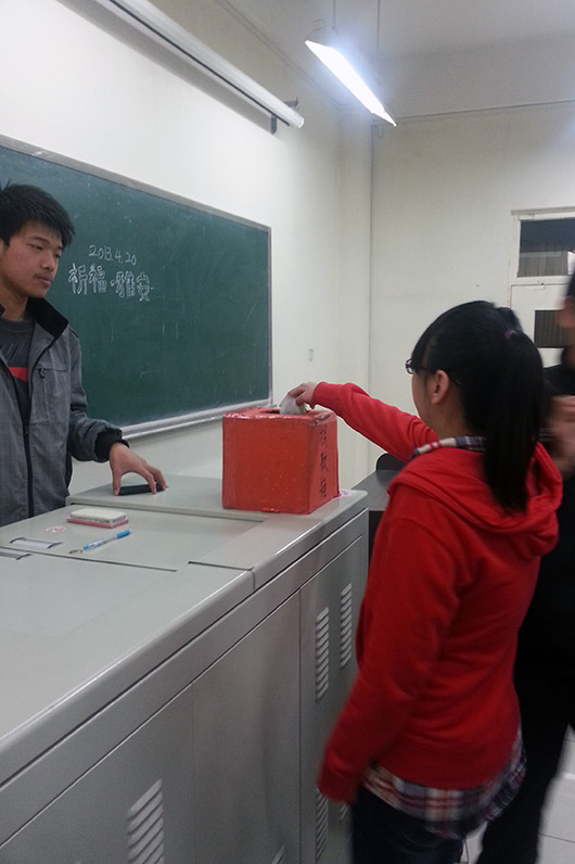 北京时间4月20日8时02分四川雅安芦山县发生7级地震,在得知雅安地震的消息后,为帮助灾区开展抗灾救灾工作,挽救众生性命,帮助灾区人民渡过难关。在伟德victor1946网站团总支、员工会的组织下,各班积极响应,纷纷行动起来,开展“为雅安祈福”募捐活动,号召大家捐款捐物,贡献出自己的爱心,为帮助灾区人民的生活尽一份力量。