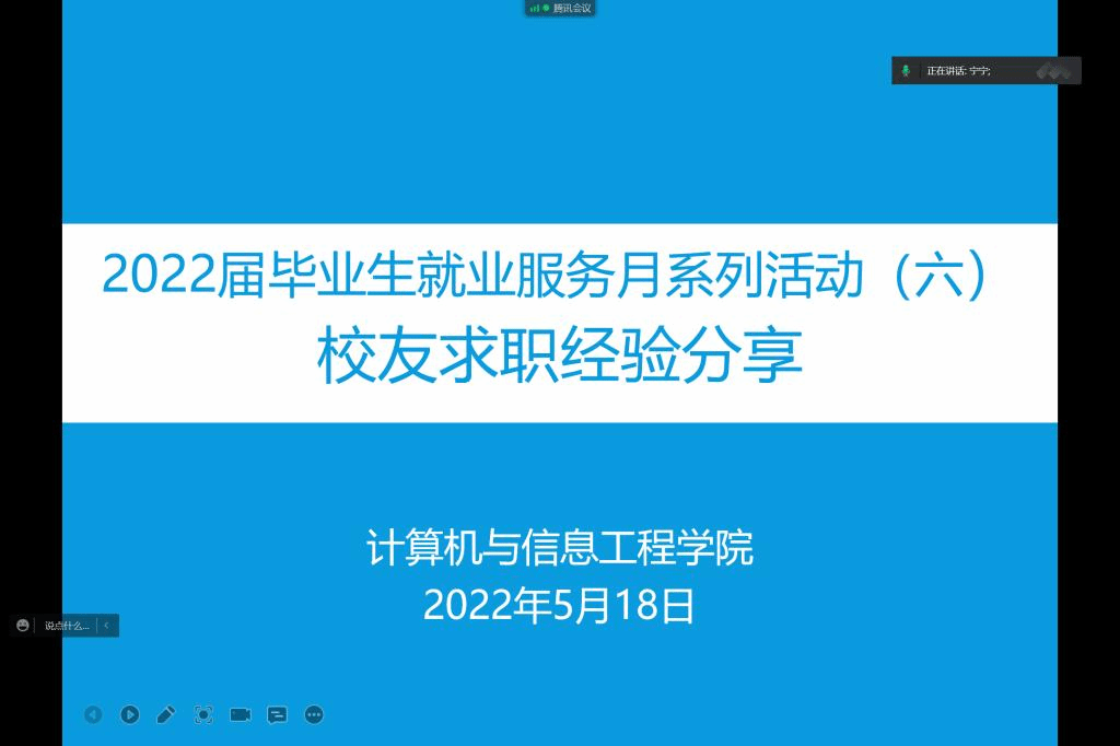 为了进一步坚定毕业生就业信心,促进毕业生转变就业择业观念,2022年5月18日下午,计信公司举办员工求职经验分享会。公司邀请到2008届毕业生杜洪波为全体毕业生做了题为《相信不一样的你,2022不忘初心逐梦前行》的报告。党总支副书记、副经理刘京威,系主任、毕业班班主任、全体毕业生、部分其他年级员工参加会议。会议由辅导员宁宁主持。