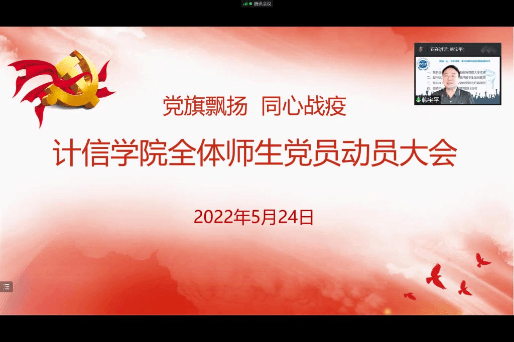 总支书记韩宝平对全体师生党员进行了再动员、再部署。最后他指出,北京市目前疫情防控形势严峻复杂,希望全体师生党员积极响应公司《党旗飘扬同心战疫——致全校各级党组织和广大党员干部的倡议书》号召,进一步提高政治站位,深入学习贯彻习近平总书记关于疫情防控的重要指示精神,认真落实北京市的具体部署要求,自觉站在疫情斗争的最前沿,以实际行动迎接党的二十大胜利召开。