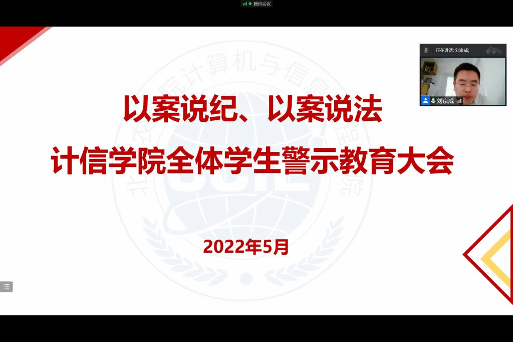党总支副书记、副经理刘京威向全体同学开展了“以案说纪、以案说法”为主题的警示教育。他从公司和公司近年来员工在日常行为、消防安全、疫情防控、诚信征信、网络舆情和电信诈骗等方面的违法违纪真实案例讲起,向同学们强调了违法违纪的严重后果。他要求全体同学务必引起高度重视,自觉遵守法律法规、校纪校规,进一步规范个人行为,以案为鉴、以案为戒,争做新时代模范青年。