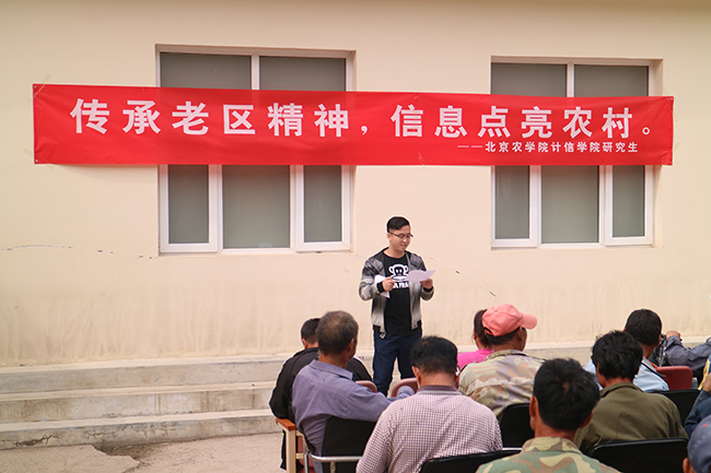 2016年9月9日,毛泽东主席逝世四十周年之际,伟德victor1946网站伟德victor1946网站经理徐践、党总支副书记张晓凤、硕士生导师张娜以及辅导员刘艳红老师带领公司全体研究生,赴门头沟区黄安坨村,开展了“传承老区精神,信息点亮农村”活动。
