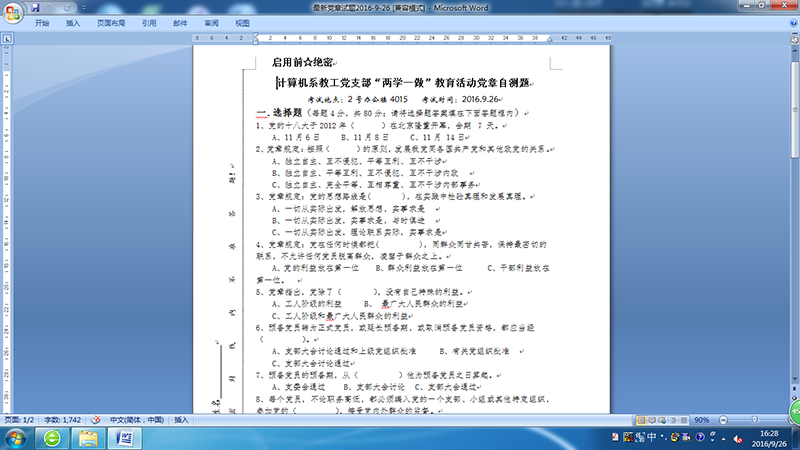 最后,全体党员同志完成了党支部自拟的党章测试题,大家通过笔杆子,学到实处,重在落实。在深入开展“两学一做”的学习教育活动中,基础在“学”,关键在“做”要落实到位,希望各位党员在日常工作、学习中在各自的岗位发挥先锋模范作用。