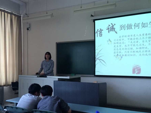 各班通过召开以诚信为主题的班会,引起大家对诚信的认识,使同学明确“诚信”的含义,理解“诚信”对员工自身发展的重要意义。各班分别通过精美的PPT、优美的文字、丰富的图片加上讲演者精彩的演讲,向大家展示了诚信的重要性,引起同学们的共鸣。同学们纷纷表示,要从自我做起,从小事做起,做一个有诚信,讲信用的人,同时要号召身边的人加入到这个队伍中来。部分班级还举办了诚信教育主题演讲活动,通过员工的演讲,不仅让同学们看到了诚信的重要性,也看到了当今社会讲诚信与不讲诚信的种种现象。诚信是老员工长期热议的话题,理想是每个人一生中追求的目标。主题演讲活动不仅可以提高同学们的语言表达能力和勇气,而且也让更多的同学对诚信有了更加深入的认识。