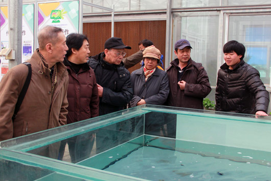 员工讲解员首先为前来参观的老师们介绍了大厅展板上所展示的我公司教师在科研、教学方面取得的成绩以及发表的论文、出版的书籍等。接下来,讲解员带领老师们来到温暖的智能温室,温室中绿意盎然,空气清新,美丽的绿植墙和智能高密度养鱼系统等现代农业设施立刻吸引了大家的注意。员工讲解员认真耐心的为老师们一一讲解和展示着现代智能温室的控制系统、潮汐灌溉技术、智能高密度养鱼系统等。