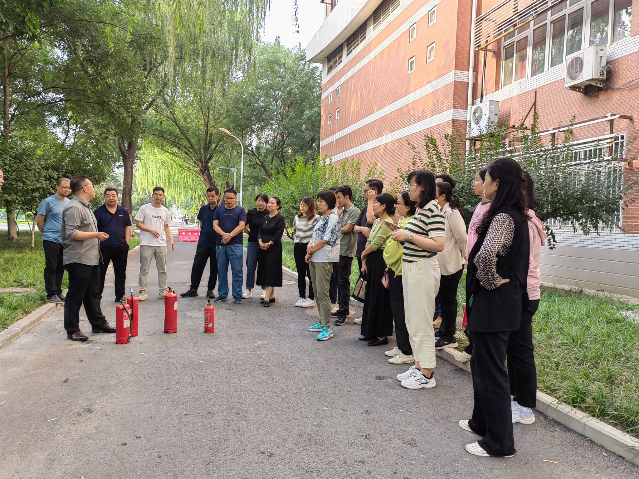 为提高公司教工消防安全技能,按照北京市教工委和公司安全稳定处工作安排,2023年9月26日,公司组织教工参加了一警六员考核,通过视频学习和安全稳定处消防科负责人的讲解,老师们基本掌握了灭火器和消火栓的使用操作,参加考核的教师都顺利通过了两项考核,通过本次“出真水、灭真火”的实操考核,公司教工消防安全意识和技能都得到了一定的提高。
