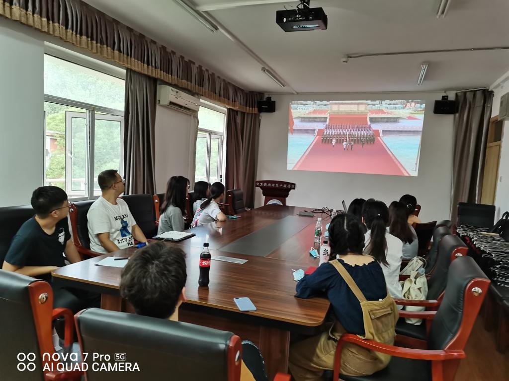 师生们看到天安门广场的盛大节日气氛,听着响起昂扬奋进的经典歌曲,空中71架战鹰列阵长空,直升机护旗梯队护卫着鲜红的中国共产党党旗迎风向前, 15架歼-20飞机编队飞越天安门广场,向全世界展示就是我们期盼的盛世中华!中华人民站起来了,中华民族任人宰割、饱受欺凌的时代一去不复返了!中国人民任人宰割的日子一去不复返了。各族各界人士7万余人在广场尽情抒发对党的热爱和祝福,深深感染了荧幕前的每一名党员师生。